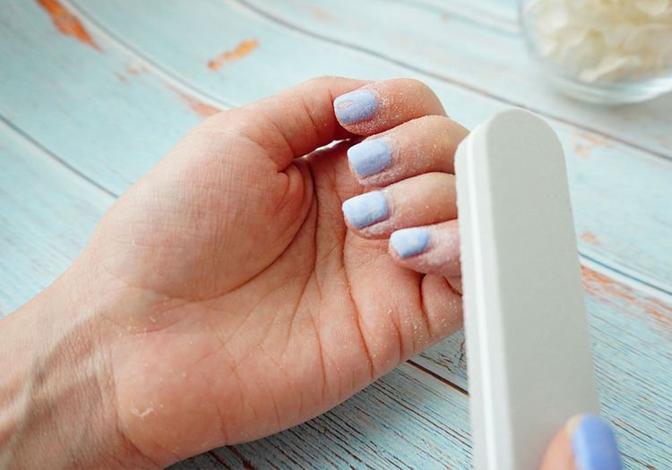 自己卸甲/拆甲方法及步骤4.用细砂磨修饰甲面
