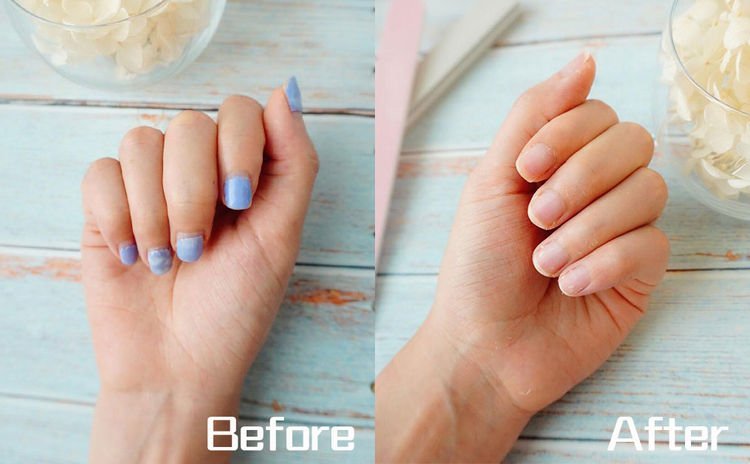 编辑Fanny技巧纯熟,左手拆甲只花十分钟左右,已彻底干净。不过也因做gel甲久了,真甲变软薄,用磨棒锄甲时应慢慢来,免得一下大力令指甲头磞掉。当然想真甲还原美美的,必须做事后美甲保养,涂Cuticle Oil和润手霜是基本,多吃有助指甲生长的食物如豆类、蕃茄、鸡蛋、牛奶、香蕉等,也是天然护甲的好方法之一。