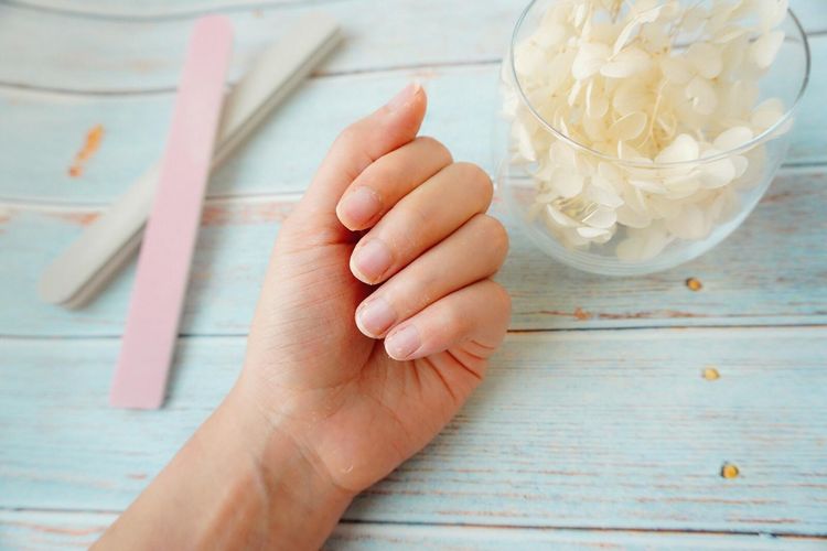 指甲上通常留有残馀Gel甲油,可用细砂磨棒稍微整理一下甲面。