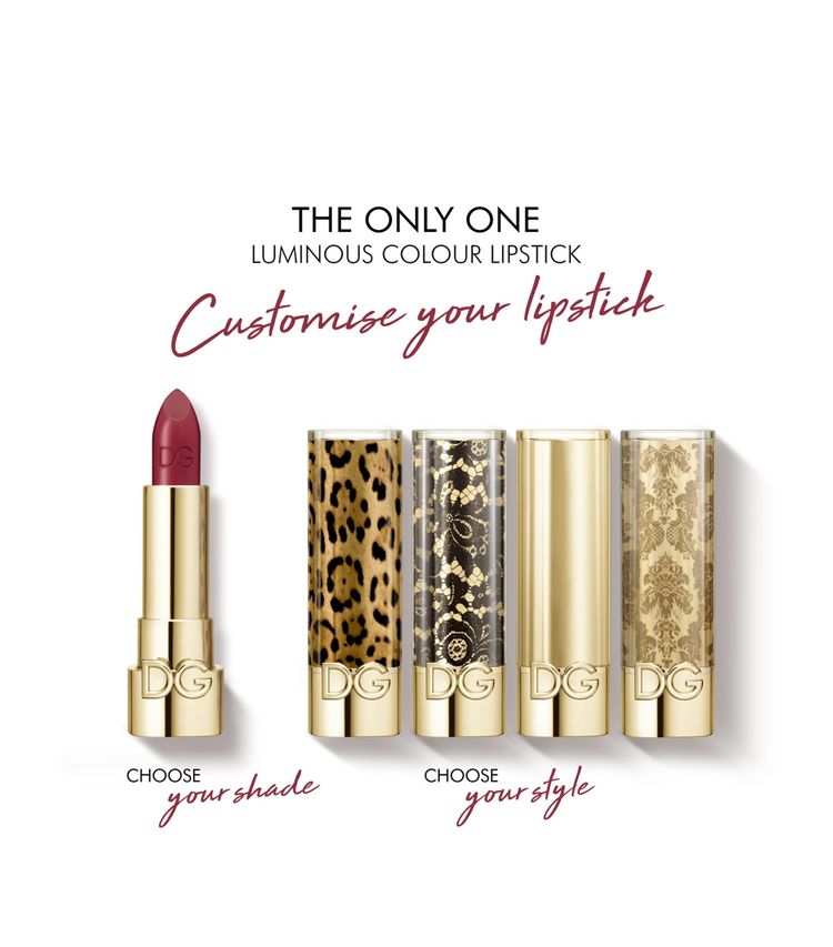 The Only One唇膏的唇膏盖也是可以替换的,一共设有四种图案花纹供选择,全都是Dolce&Gabbana经典标志:分别有大马士革花纹、黑色蕾丝、巴洛克风格、和豹纹图案。为唇膏每天转新装,配合不同的心情和造型。
