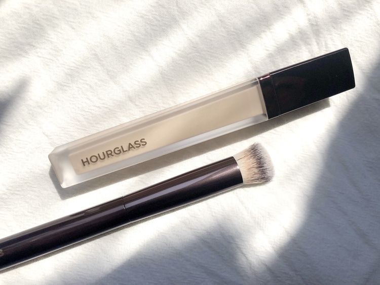 遮瑕最忌太干,令眼纹暴现又卡粉,而Hourglass这款新推出的遮瑕液就令笔者很满意,奶油状质地跟一般粉底液很相似,能轻易融合底妆及肌肤,专柜化妆师更指很多人也会直接用它当粉底也OK!戴口罩的日子笔者就只用它遮盖黑眼圈,省略粉底,而涂抹的重点秘诀是份量一定要少,再慢慢扫开就能修饰瑕疵,而且效果持久贴服,没有细纹问题,不过最惊喜的部份还是品牌专属的遮瑕扫!(下文续)