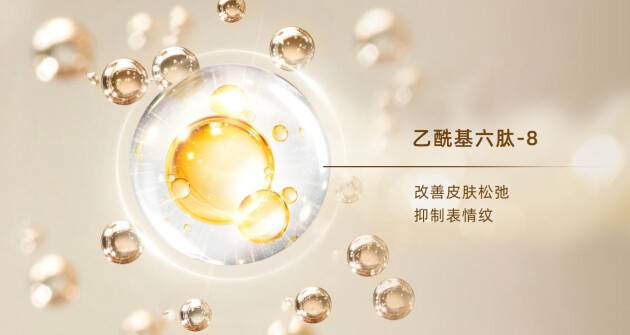 值得一提的是,其核心成分乙酰基六肽-8,是抗皱届的神奇成分,被誉为“涂抹式肉毒杆菌”。它能够抑制神经传导,防止细纹的生成,帮助肌肤保持紧致状态;同时改善细胞新陈代谢,改善预防动态纹路,促进胶原蛋白增长,让肌肤富有光泽和弹性。
