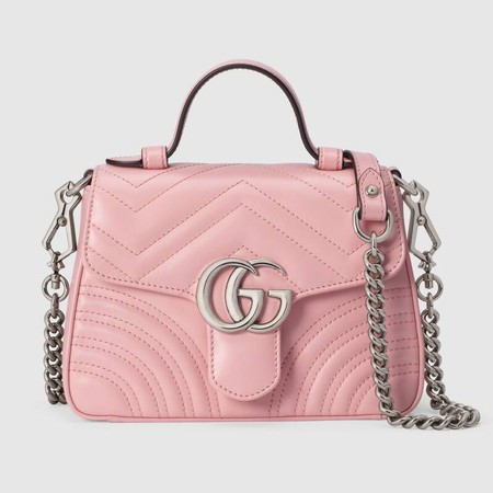 Gucci热卖包款GG Marmont于2020推出柔和色系,经典双G Logo和蜡笔粉色超应景春夏,有肩背包和手提包等选择,符合不同需求。